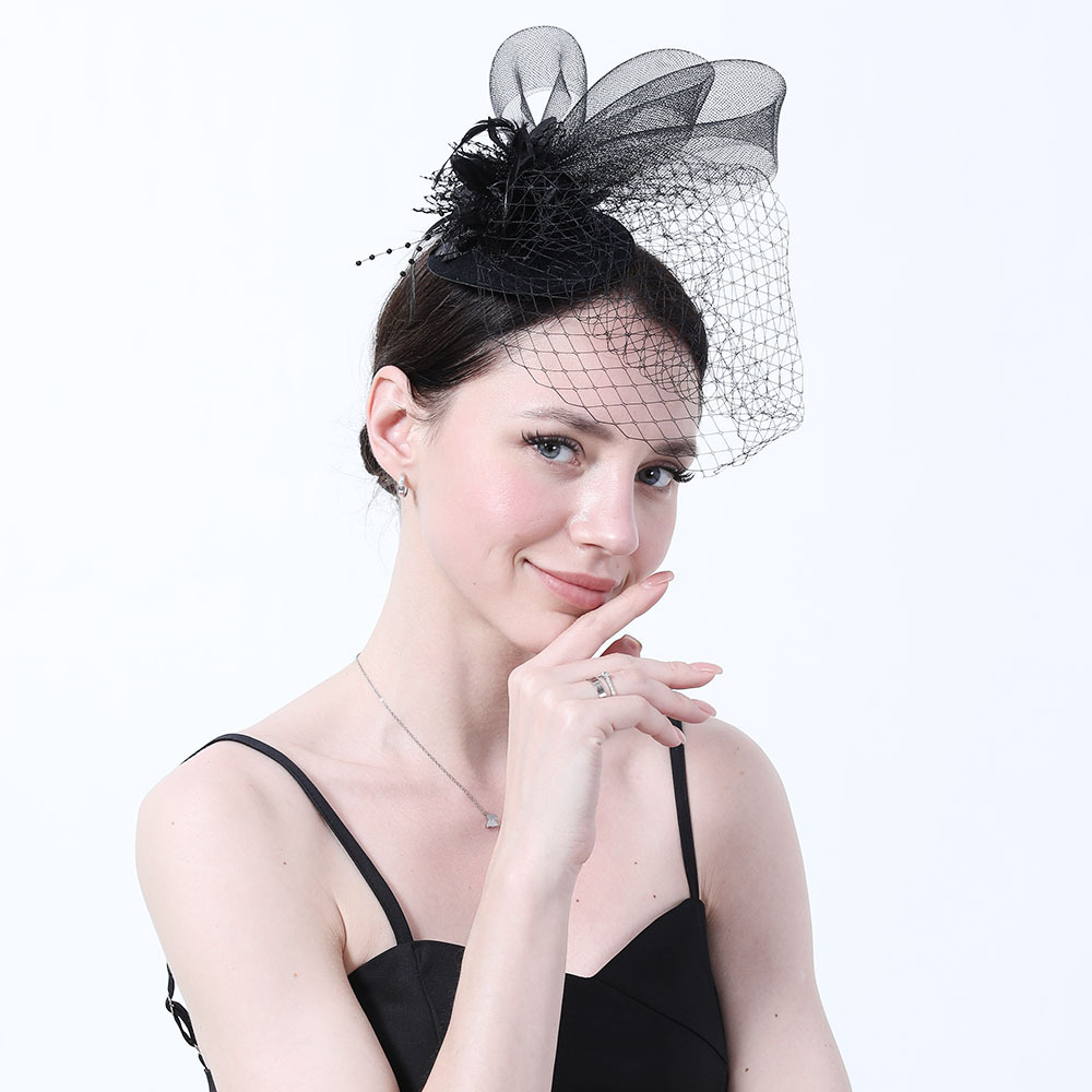 クロスボーダー新品レディースティーキャップダービー帽子ウェディングチャペル花嫁カクテルフェザーヘアピンヘアアクセサリー