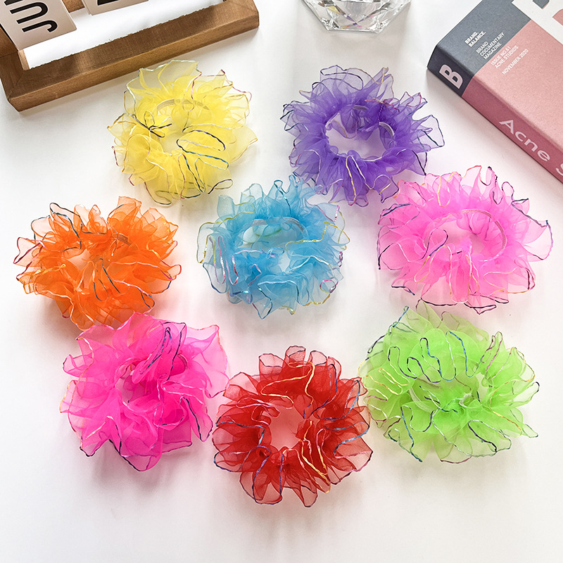 5cmの花の補助材料の超仙の気質の細いきらめく顔の欧根の紗は辺の花の髪飾りの部品の靴の花を焼いて花を包みます。