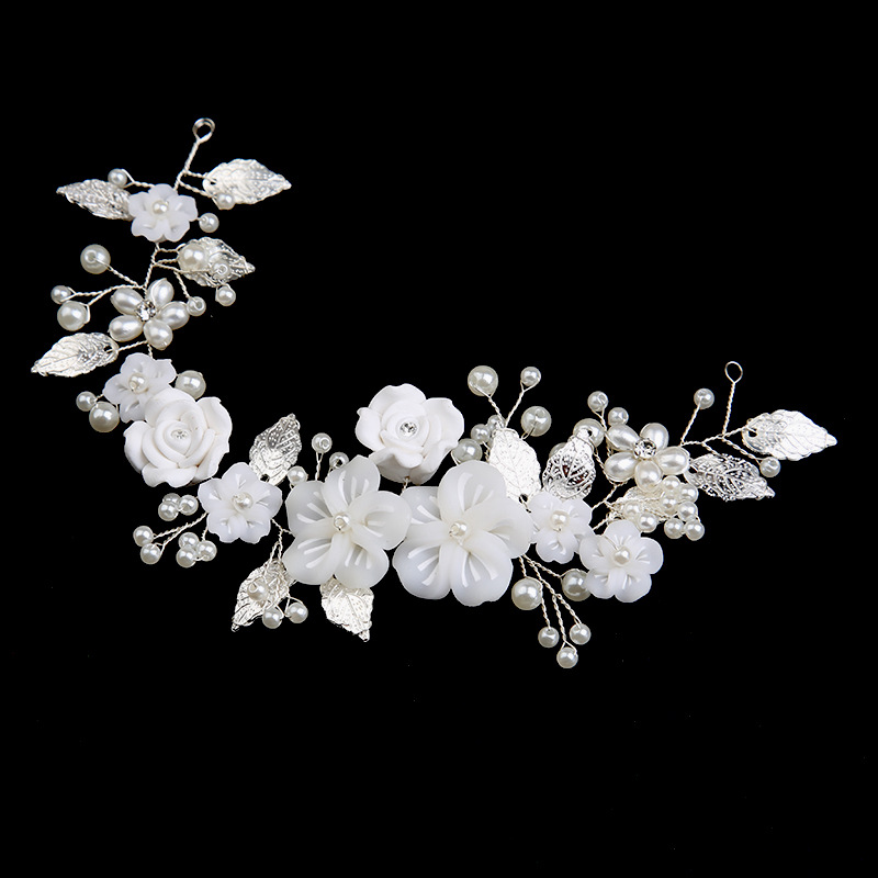 ヨーロッパの手作りソフトクレイローズヘッドバンドブライダルヘッドバンドヘアアクセサリー小さな新鮮な真珠の花嫁のウェディングドレスアクセサリーヘッドバンド
