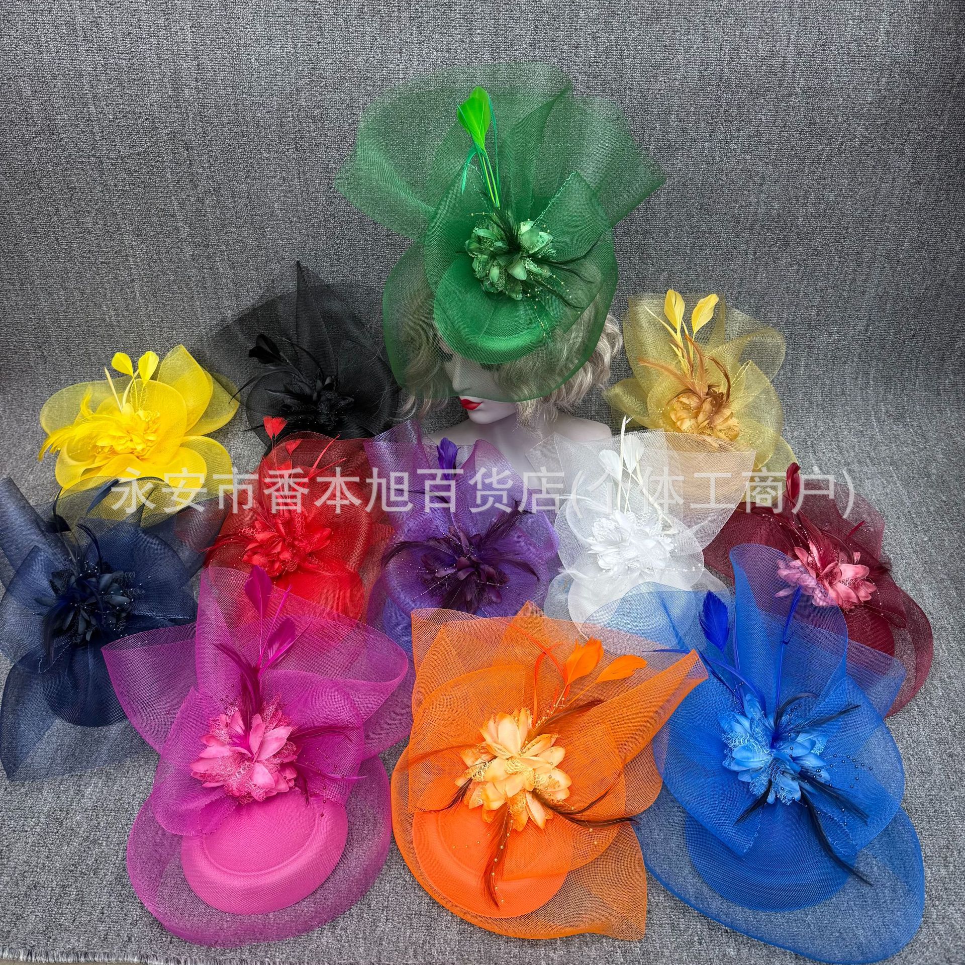 競馬ベール、ヘッドドレス、プロムブライダルヘアアクセサリー、パーティー、ヨーロッパとアメリカのフェザーメッシュシルクハット装飾のための国境を越えた特別供給