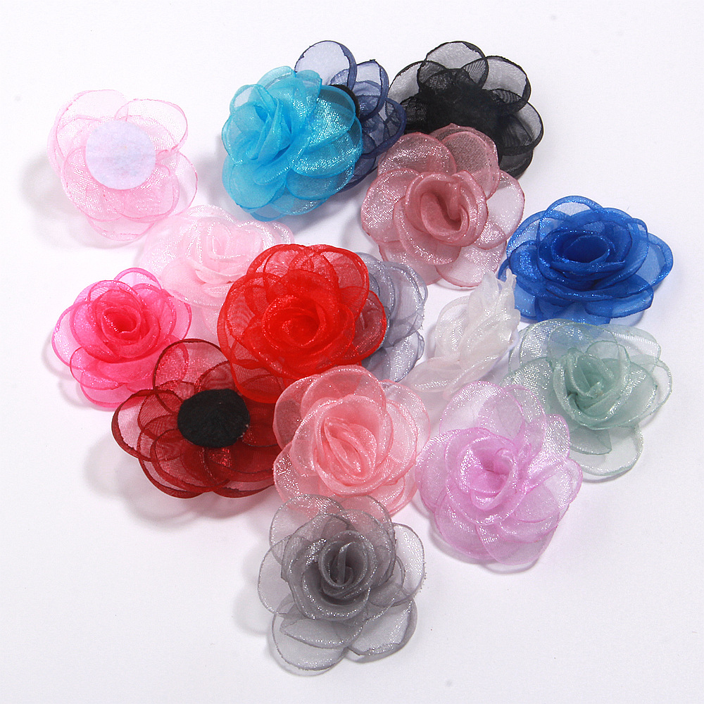 オーガンザフラワー 4.5 センチメートルメッシュシフォンローズ diy 手作りヘアピンジュエリーアクセサリーヘッドフラワー靴フラワーアクセサリー