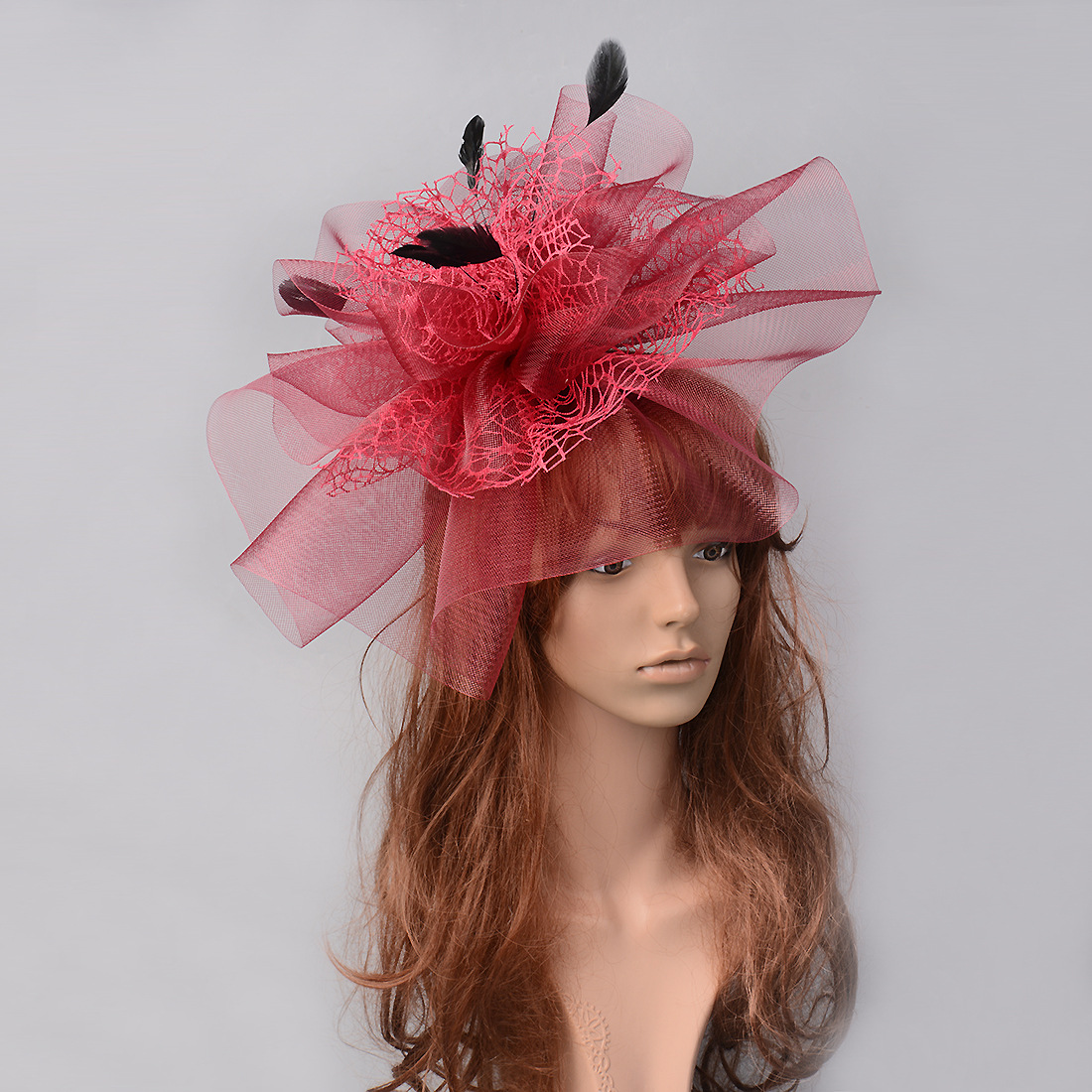 手作りの大げさな網の糸の羽の大きい髪の花のヘアピンのショーの表は髪飾りのパーティーの宴会のモデルを演出して写真を撮ります。