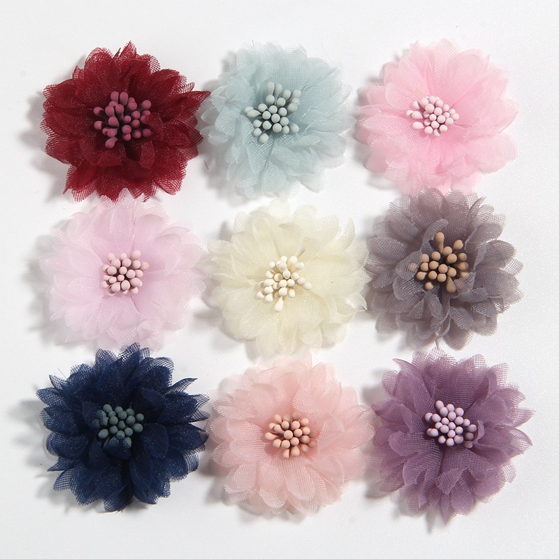 人気手作り雪紡織布芸10cm花蕊花diy児童髪飾り胸花服装靴帽装飾部品