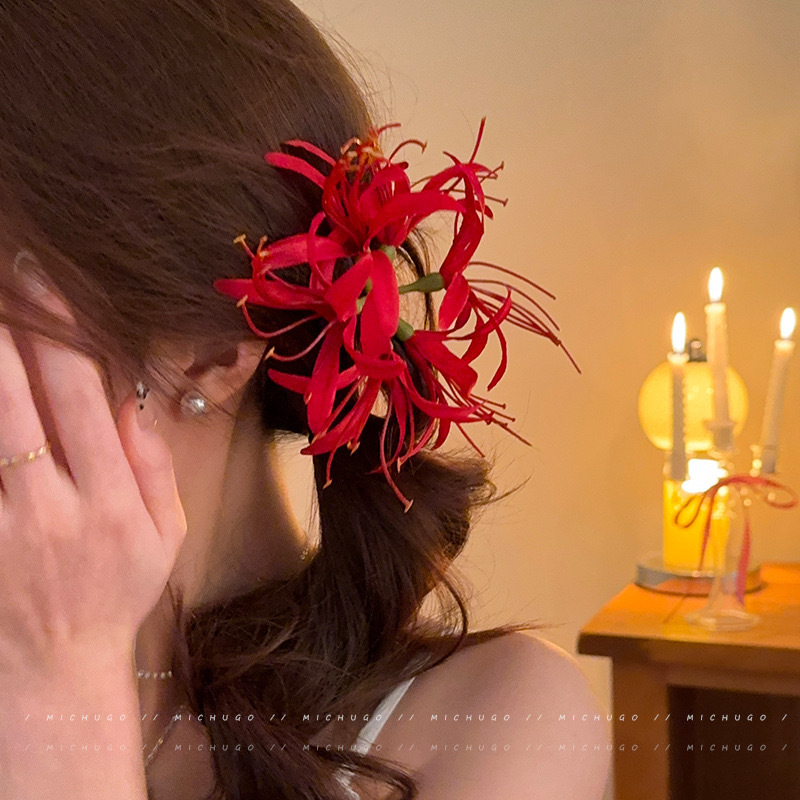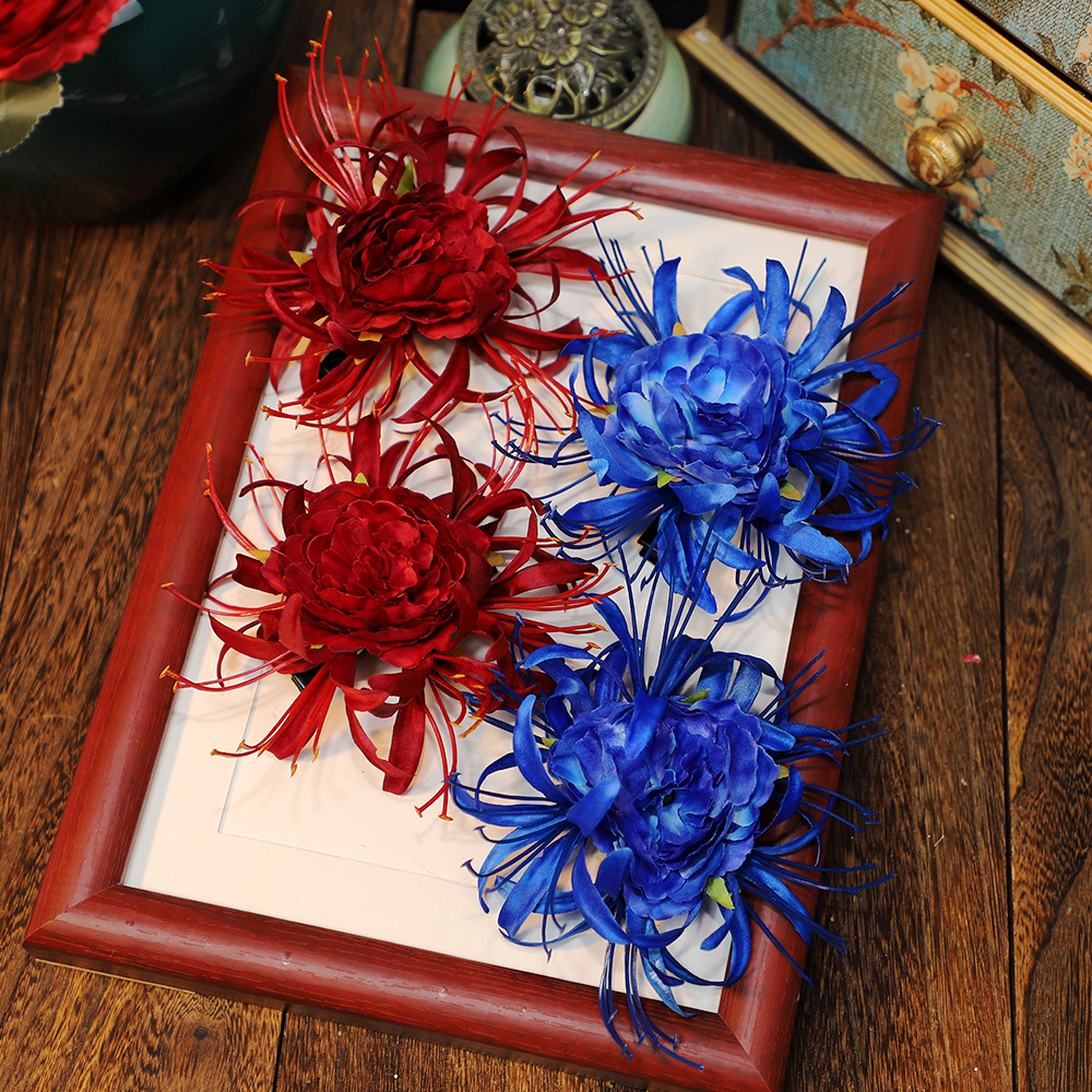 髪飾りのヘアピン赤青彼岸の花の縁に手作りの布芸の髪飾りを挟む超仙新中国式チャイナドレスの髪飾り