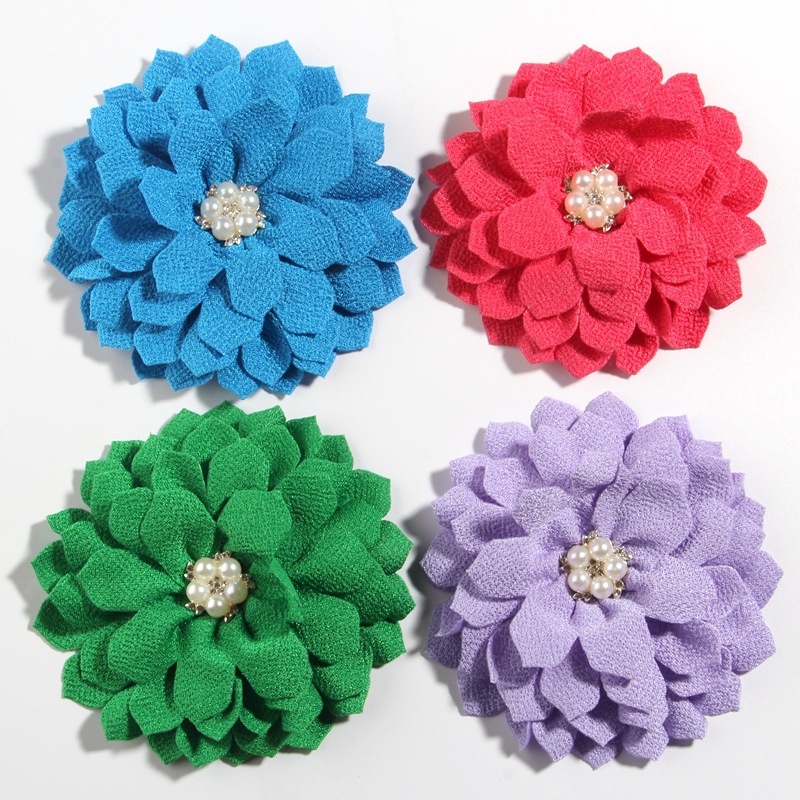 外国貿易11cm手作りサテンシフォン花花ドリル真珠花diy靴帽服装アクセサリー