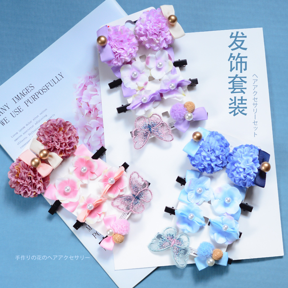 着物の髪飾りセット日本の髪飾り蝶結び真珠の頭花絹花が可愛いです。