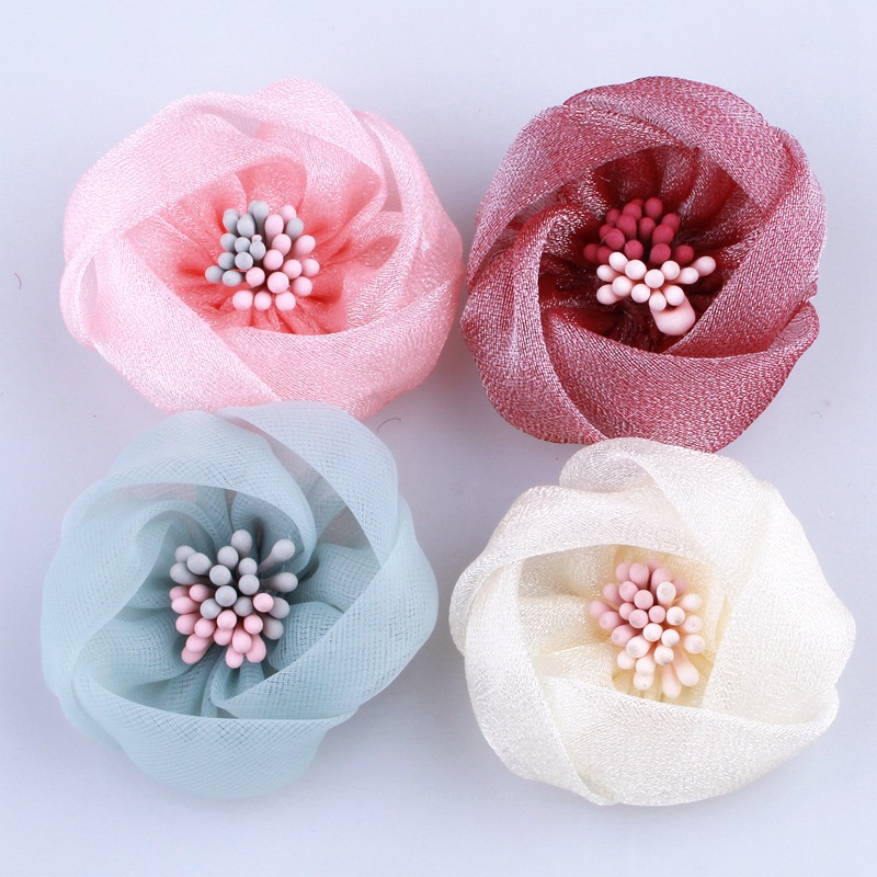 4cm韓国版花蕊手作りDIYシフォンネット糸服装靴布花飾りアクセサリーメーカー