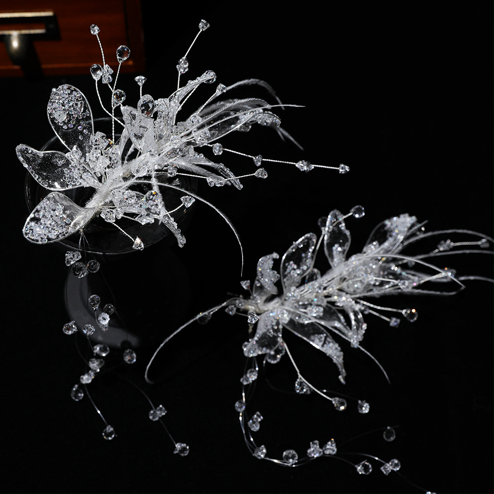 ヘラのアクセサリーの手作りのシンプルな仙気の羽の滴ゴムの砂利の水晶の金の4セットの旅行は結婚する新婦の頭飾りをたたきます。