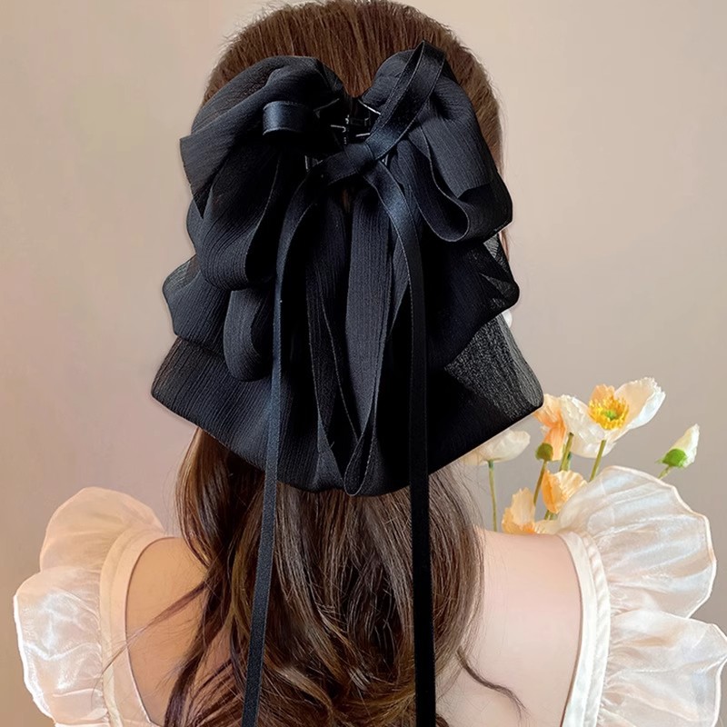 中国式の新しい雰囲気感の赤い系の髪飾りのベルベットの蝶結びの金属のヘアピンのクリップのサメのクリップ