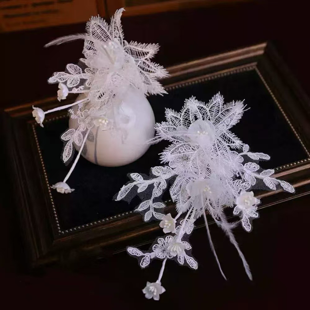 新しいオリジナルデザインのシンプルな白いレースのスズランの花の花嫁のヘアアクセサリー屋外旅行写真ウェディングドレスクリップ女性用