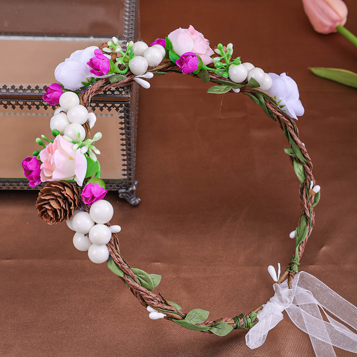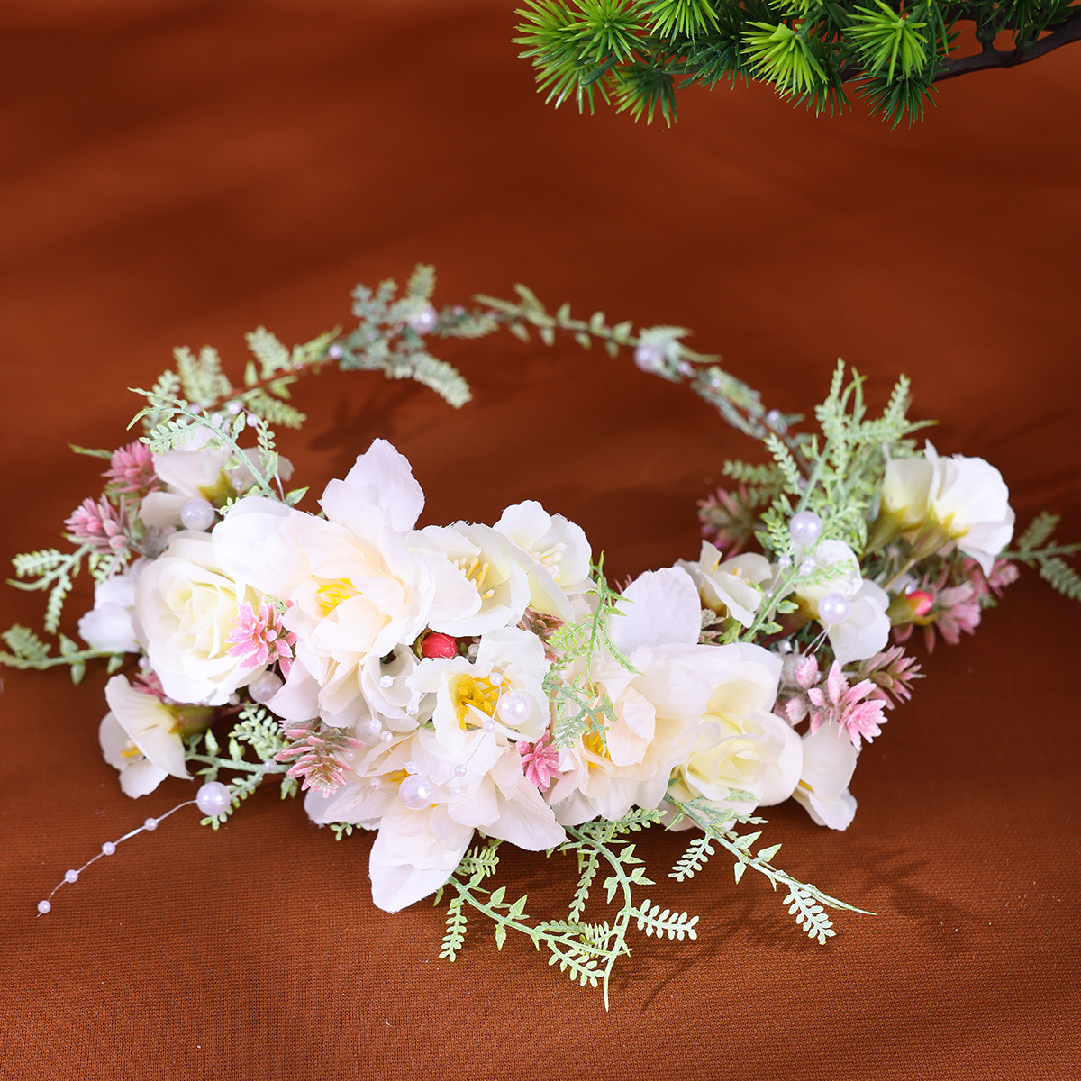 ネットの赤い子供の森系のシミュレーションの花輪のヘアバンドのかわいい花の子供の頭の花の髪飾りの女性の成人の写真のかんざしの花の髪飾り