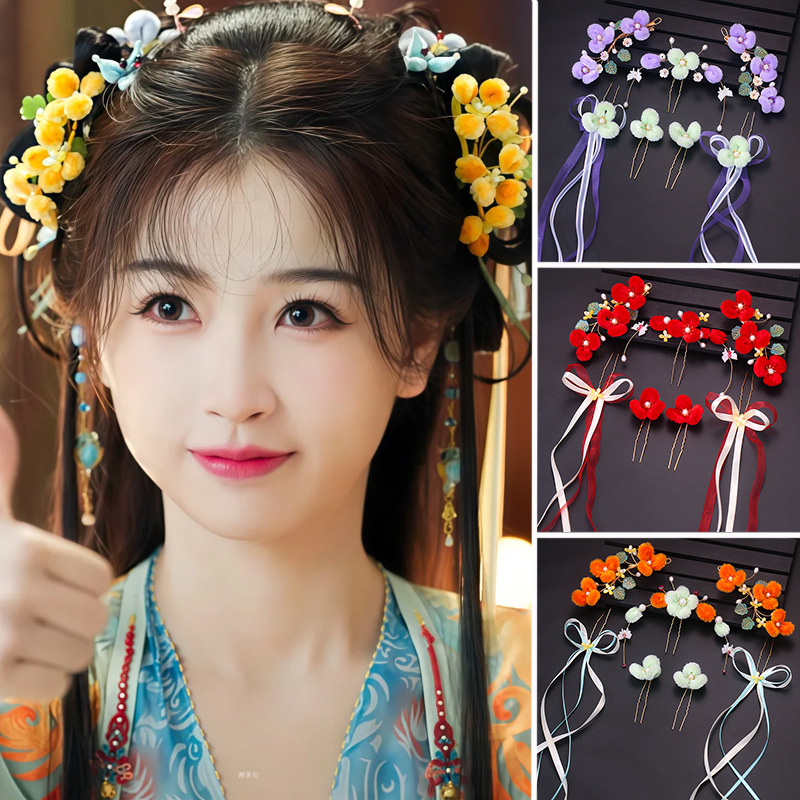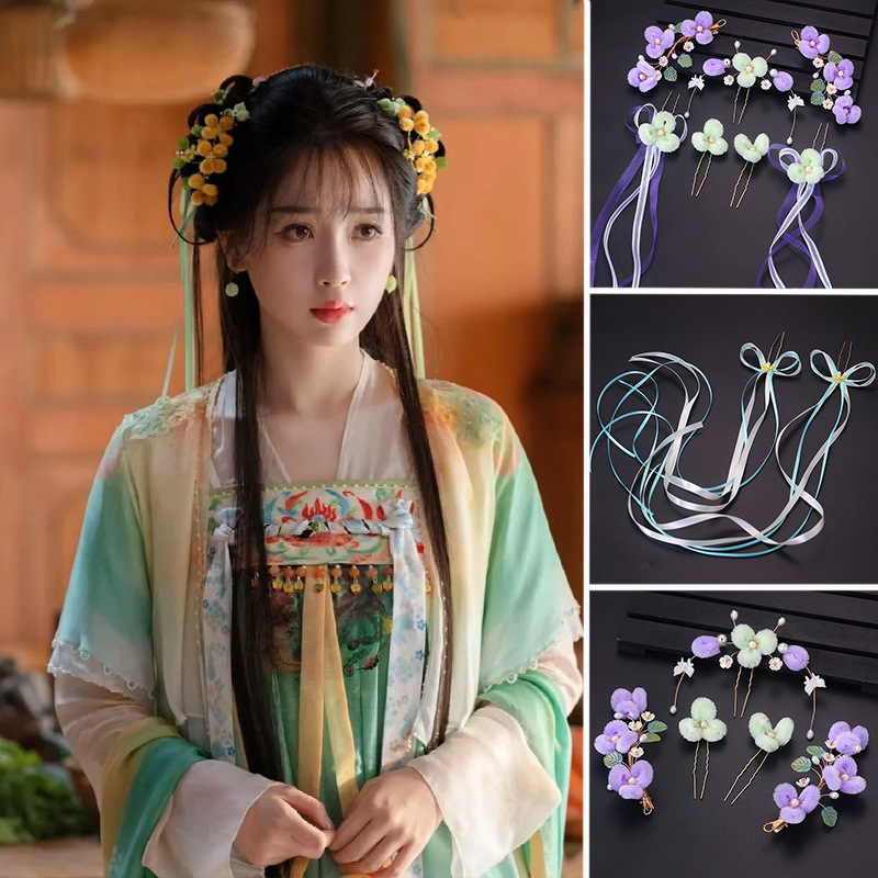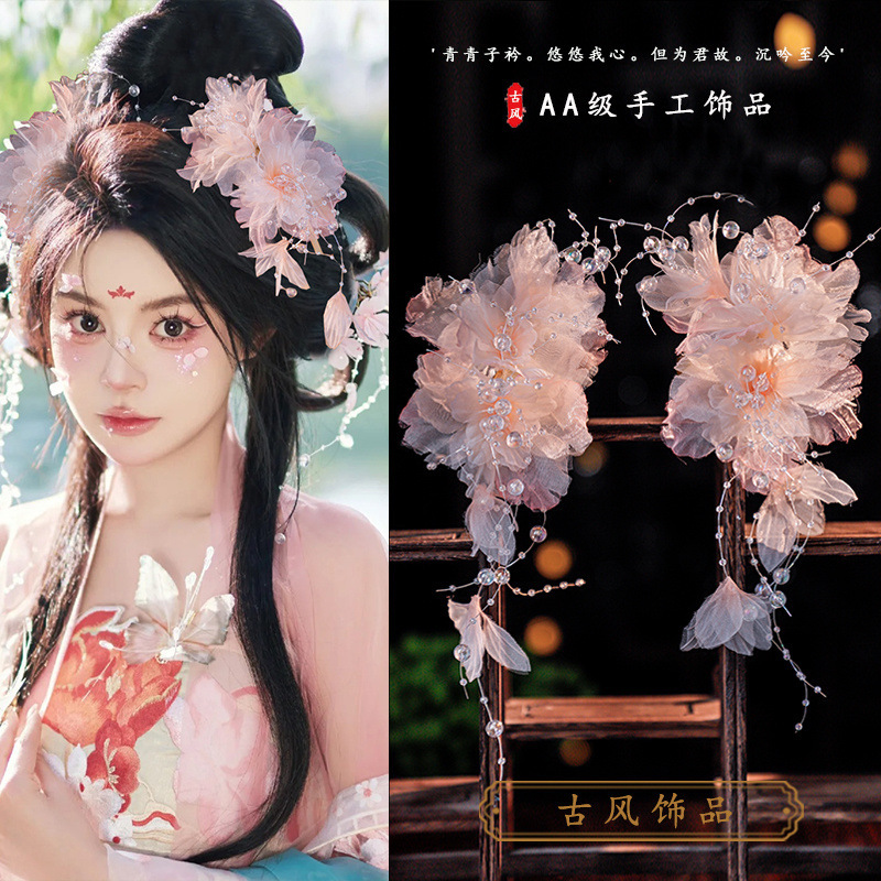 古風漢服頭飾り浅粉瑠璃歩揺流蘇髪かんざしセット超仙対挟み2024年新作アクセサリー