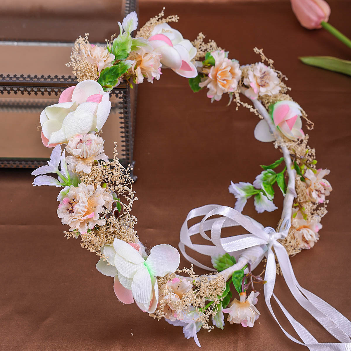 クロスボーダーの花の輪の頭飾りの花嫁の結婚式の旅は休暇の写真を撮ります。