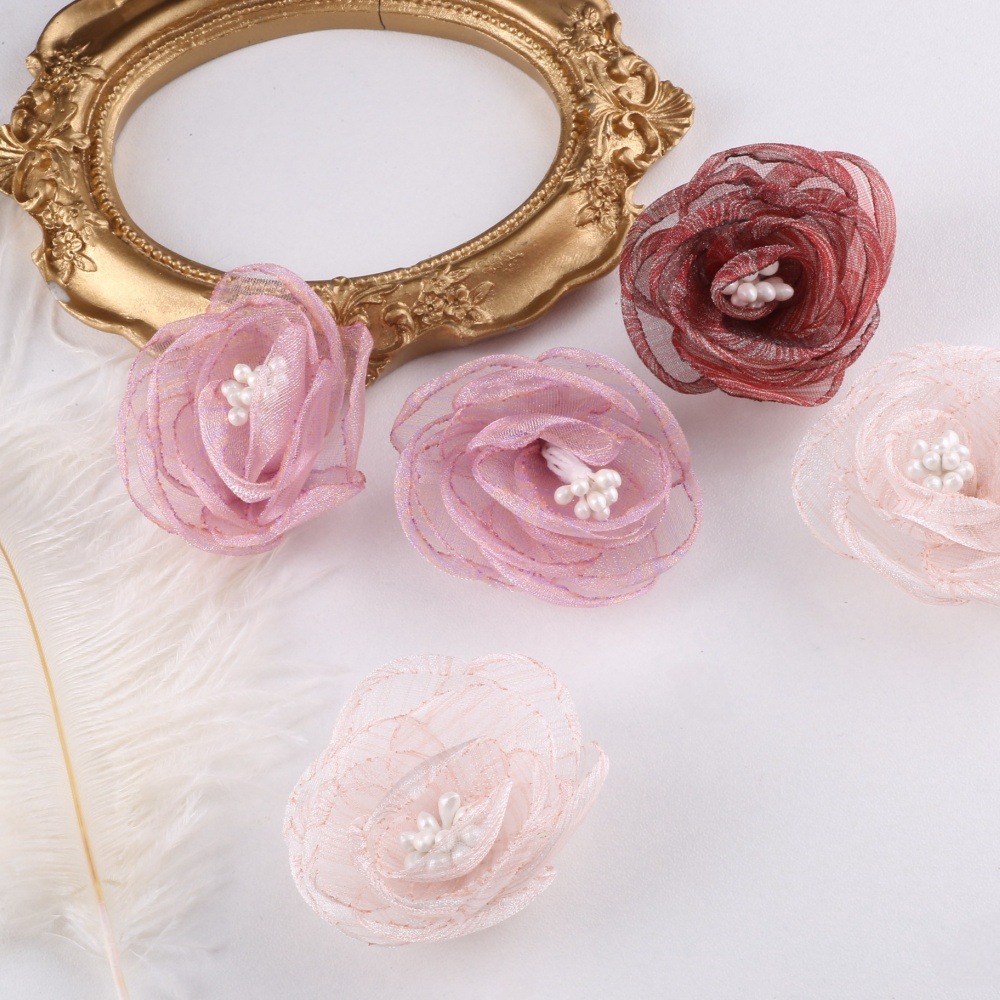 4.5cm擬似ガーゼ欧根紗立体バラ花偽花DIY手作り髪飾りヘアピン材料