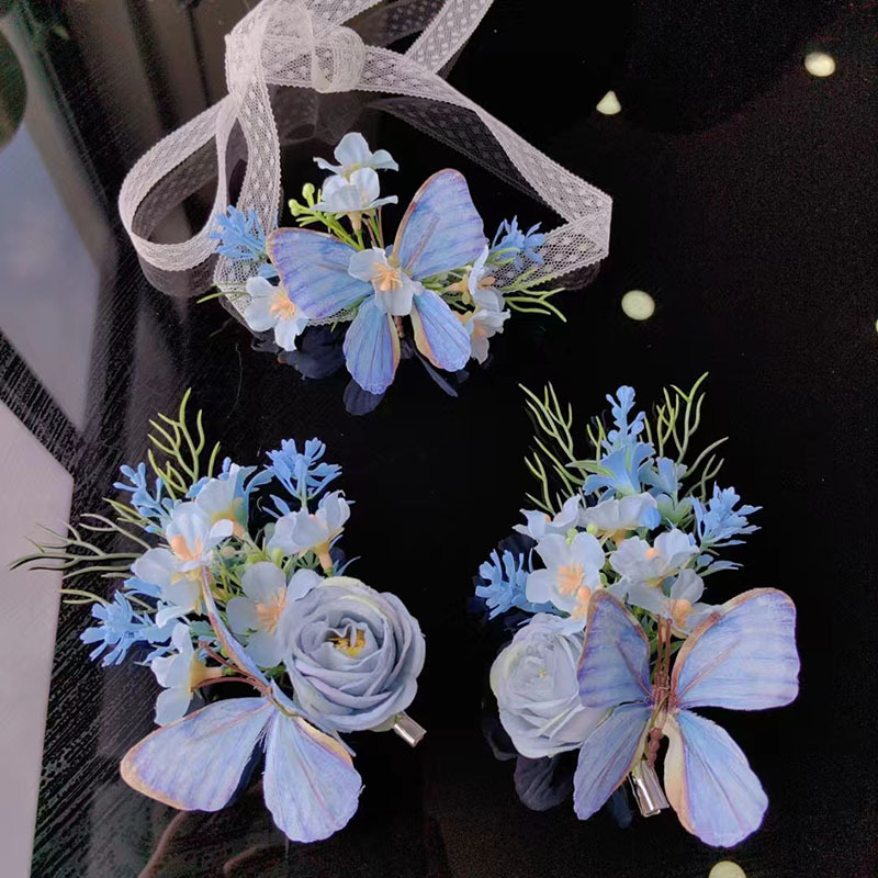 新商品の森系の青い蝶の花は首の花を挟んでセットします。