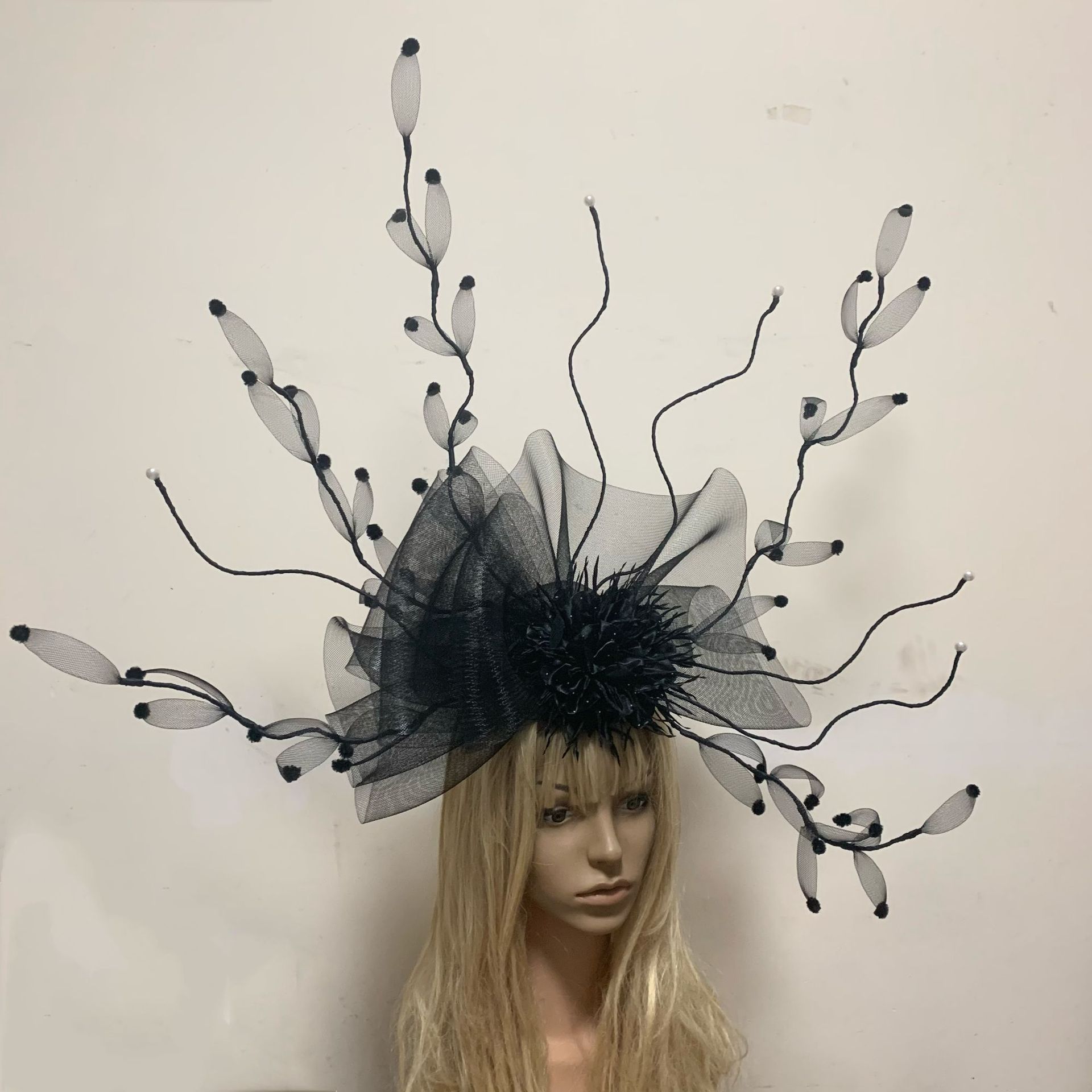 オリジナルの立体の木の枝のレトロな誇張の大きい網の糸の頭の花のショーの表は髪飾りのモデルのパーティーの撮影の頭飾りを演出します。