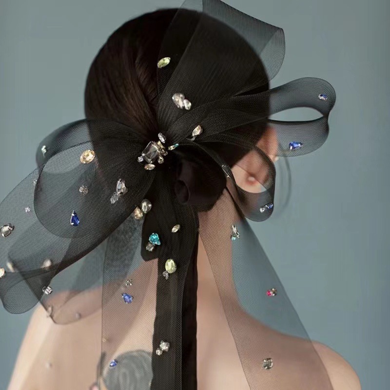 花嫁の髪飾り手作りの黒い弾力的なネットには、蝶結びの髪飾りの花嫁の結婚式のドレスのアクセサリーが入っています