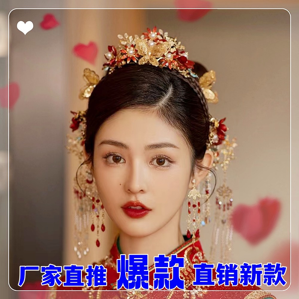 国境を越えた新中国式花嫁チャイナドレスの頭飾り赤い金色の花の小さな古着秀禾の髪飾り