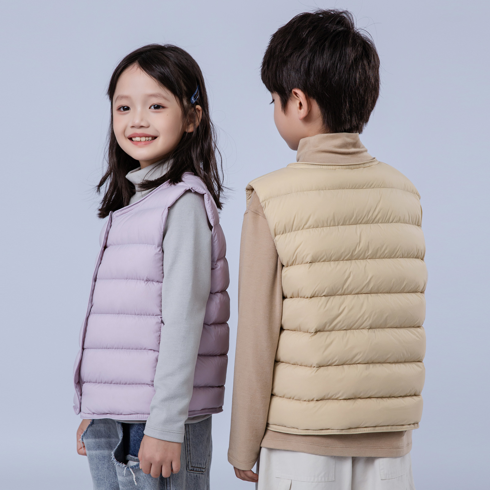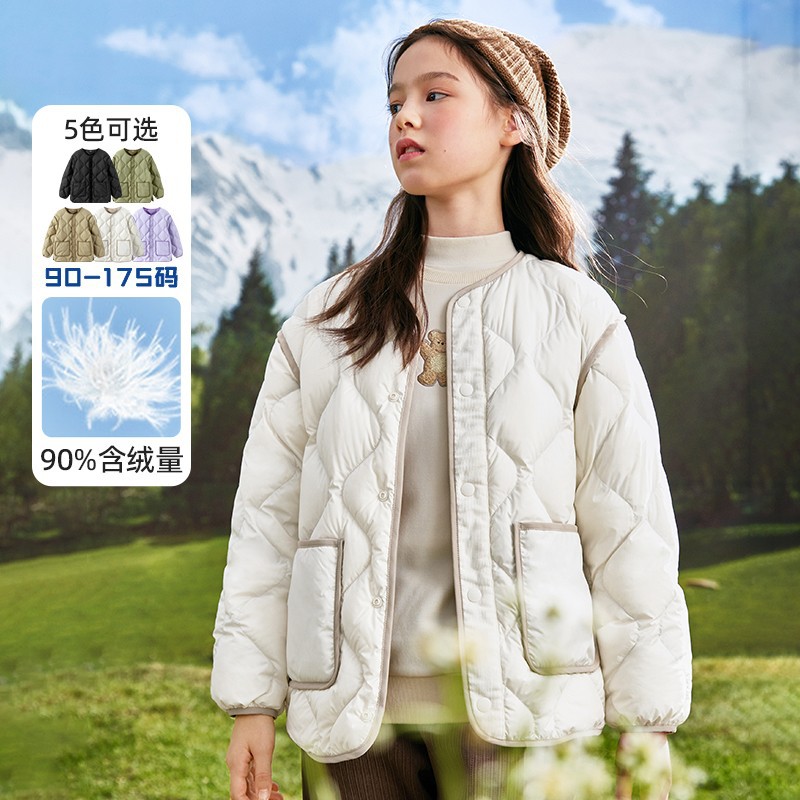 中大童90ダックダウン軽量ダウンインナーライナー2025新作子供秋冬ラウンドネックウェーブ軽量ダウンジャケット