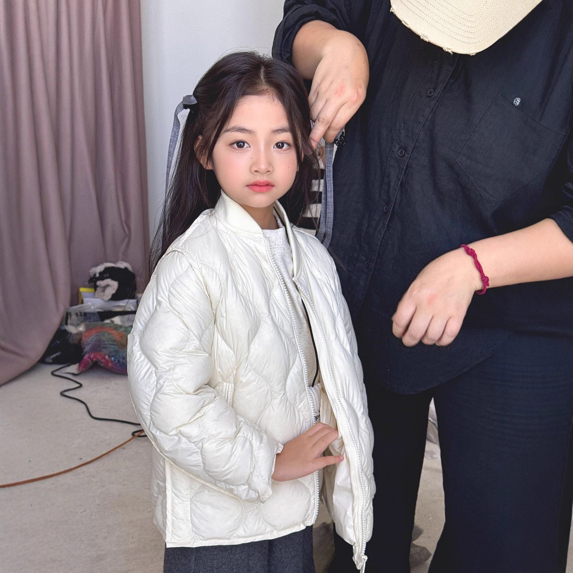 親子は日系90毛の薄い子供のダウンジャケットの中の胆の2024の新型の制服の神器の女の子の男の子の中で掛けます。