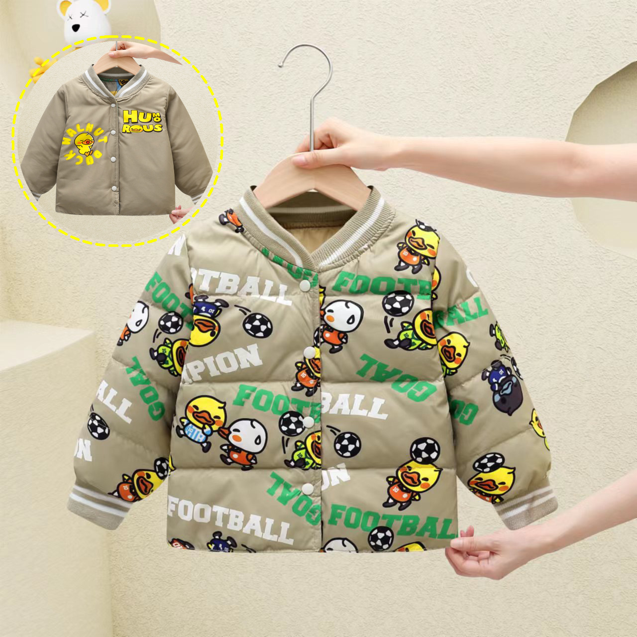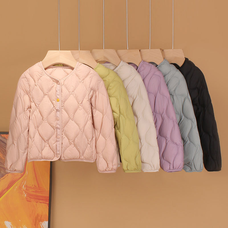 リトルイエローアヒル子供用ダウンライナー秋と冬の新しいスタイルのカーディガン、男の子と女の子用、ホワイトダックダウンの軽くて薄いジャケット