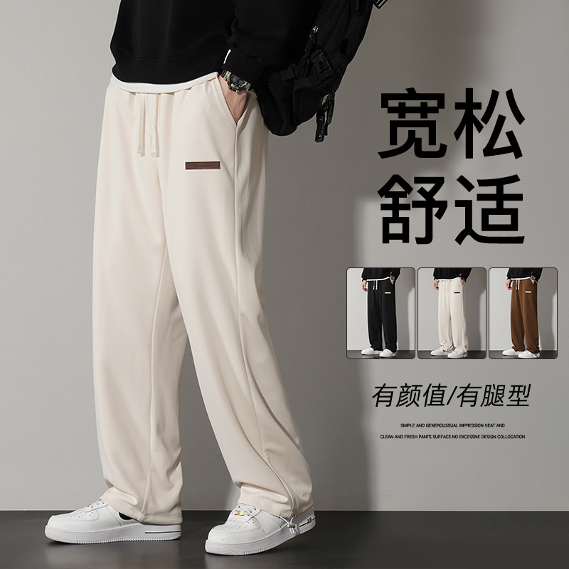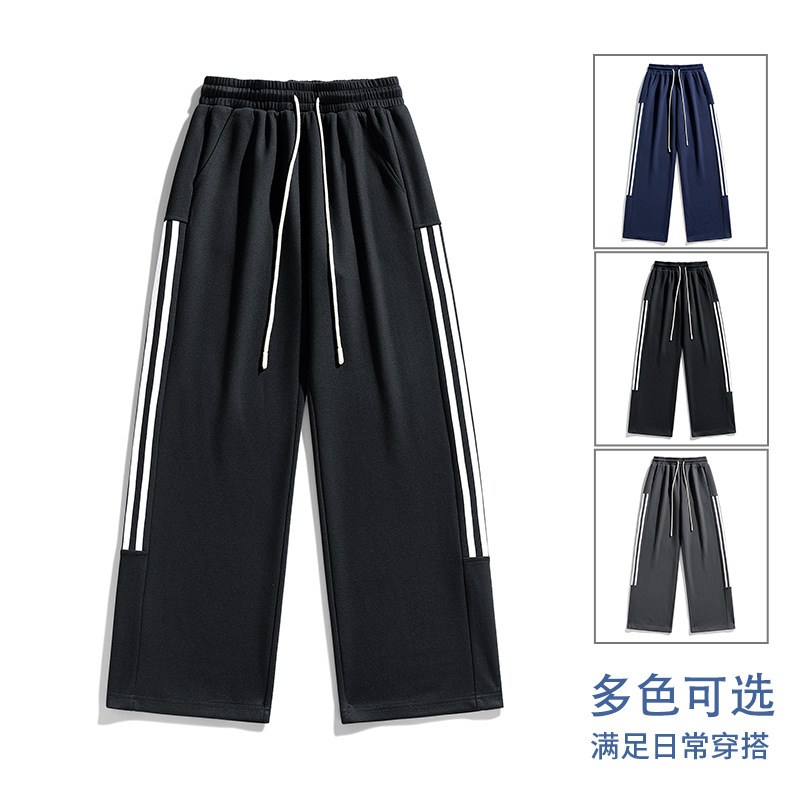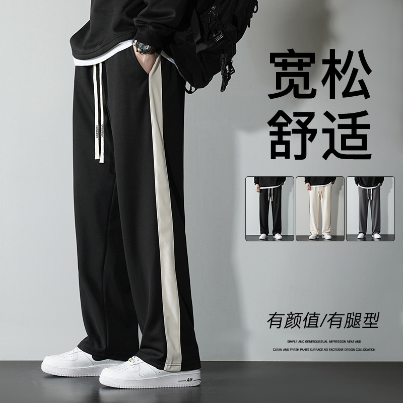 2025新型春秋三条鉄棒衛ズボン男性垂感直筒レジャー垂順束足ひも運動ズボン