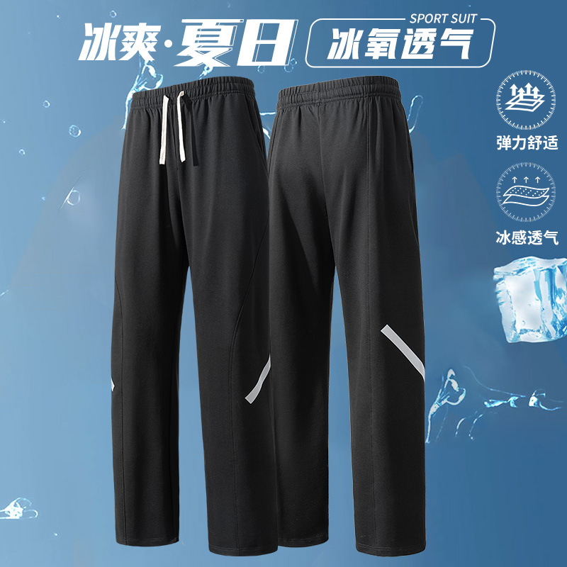 夏用高弾性アイスシルクパンツ、メンズカジュアルパンツ、薄手ストレートレッグパンツ、大きいサイズルーズ9点パンツ、スポーツパンツ