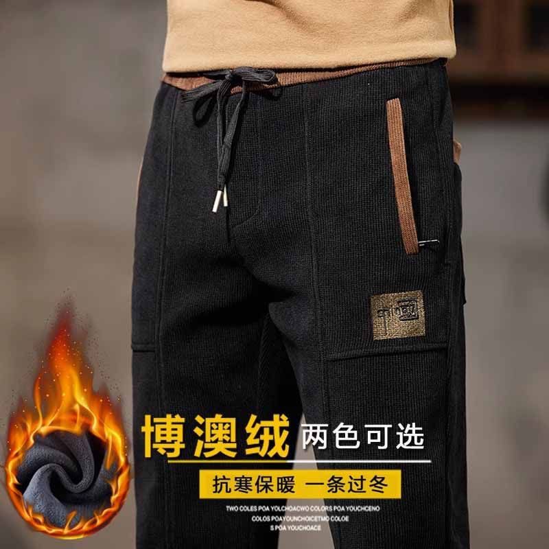 恒源祥とベルベットの厚手の保温衛生ズボン男性カジュアルパンツ冬の中年の外着足運動綿ズボン