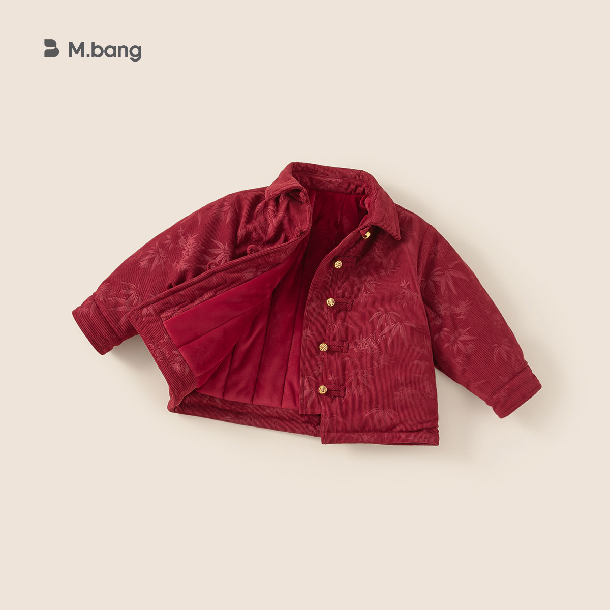 邦選子供服2025冬新作赤色ジャケット中国風プリントシャツ男の子正月服3-8歳綿服
