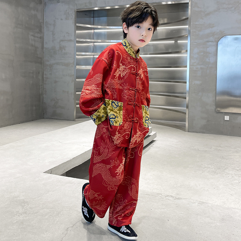 少年中国風ファッション洋風唐装春秋新商品韓国版国風大龍セット代件