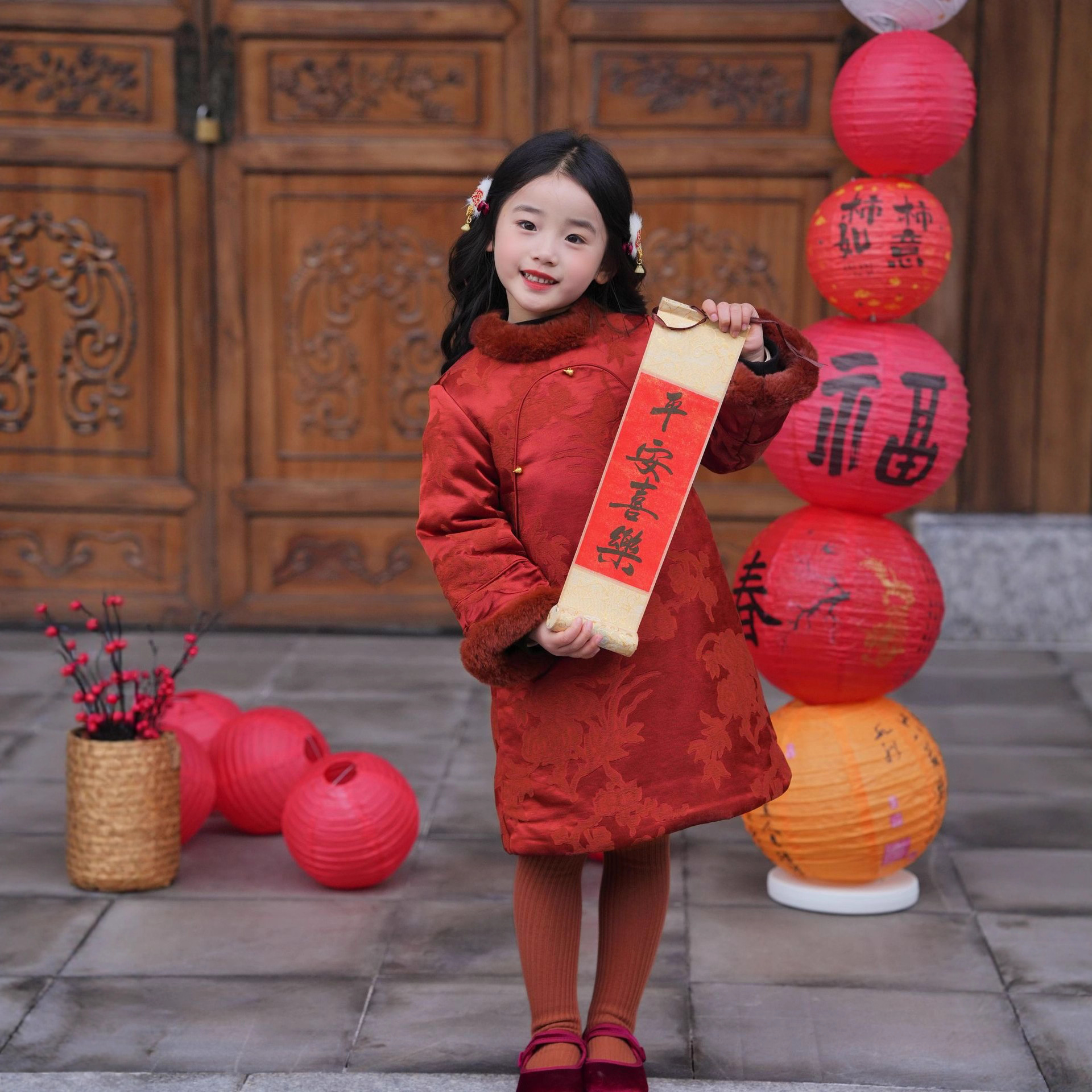 女の子の冬服、新年の挨拶用衣装、女の子の冬服2025年新作、古代風超仙風衣装、秋冬子供服、中国風子供服