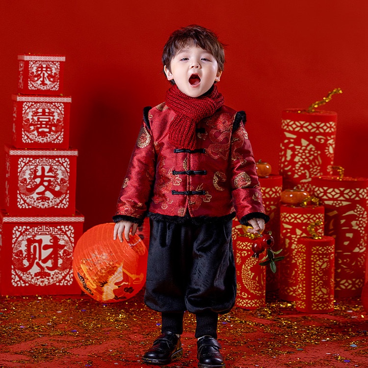 新年のご挨拶服男の子唐スーツベスト女の子子供ベビー2024新年服新年子供服綿冬ベスト赤