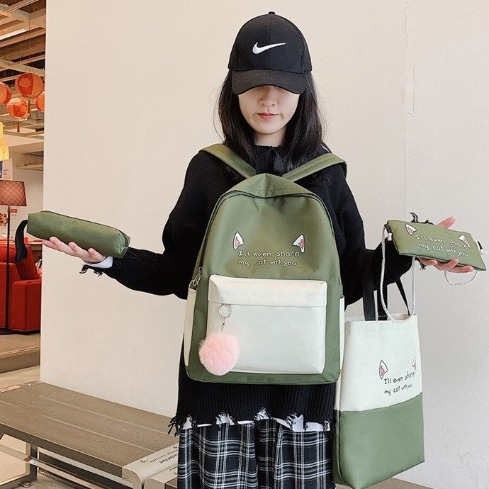 新商品5点セットカバン女子韓国版小学生中学生高校生大容量小清新ファッションリュックサック