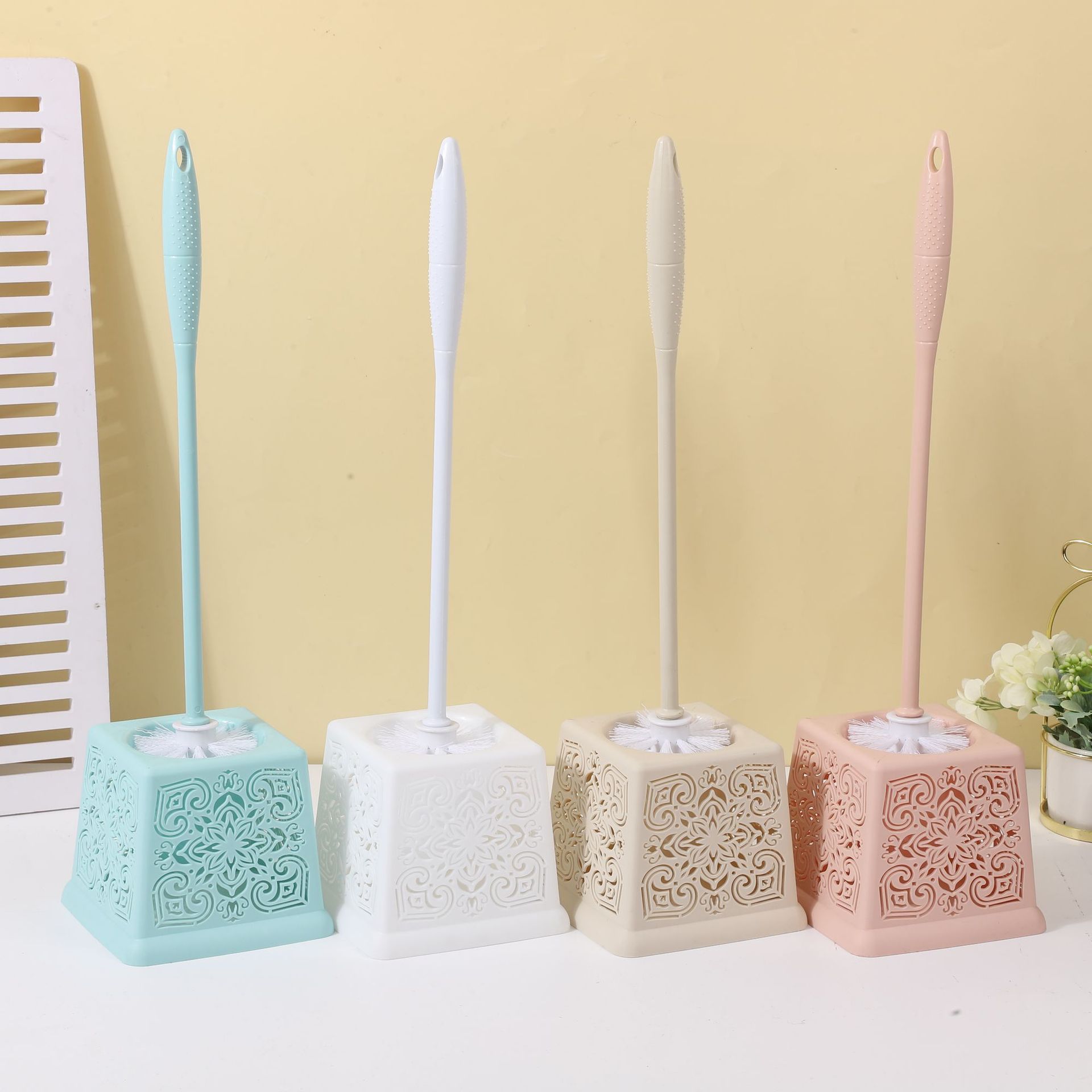 外国貿易用プラスチック製トイレブラシ、ベース付きセット、家庭用、死角なしトイレブラシ、ナイロン毛、浴室掃除ブラシ