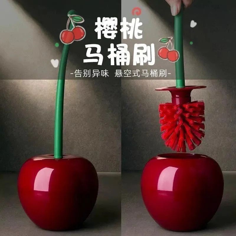 チェリー型トイレブラシ、家庭用長柄ソフト毛、日用品、クリエイティブなプラスチック製掃除ブラシ、トイレセット