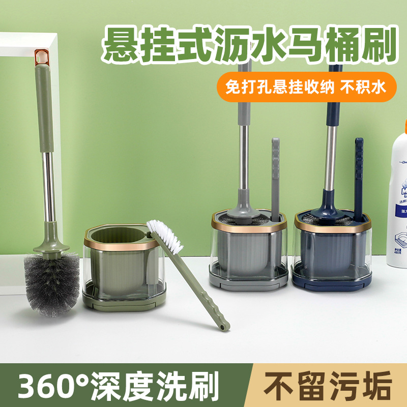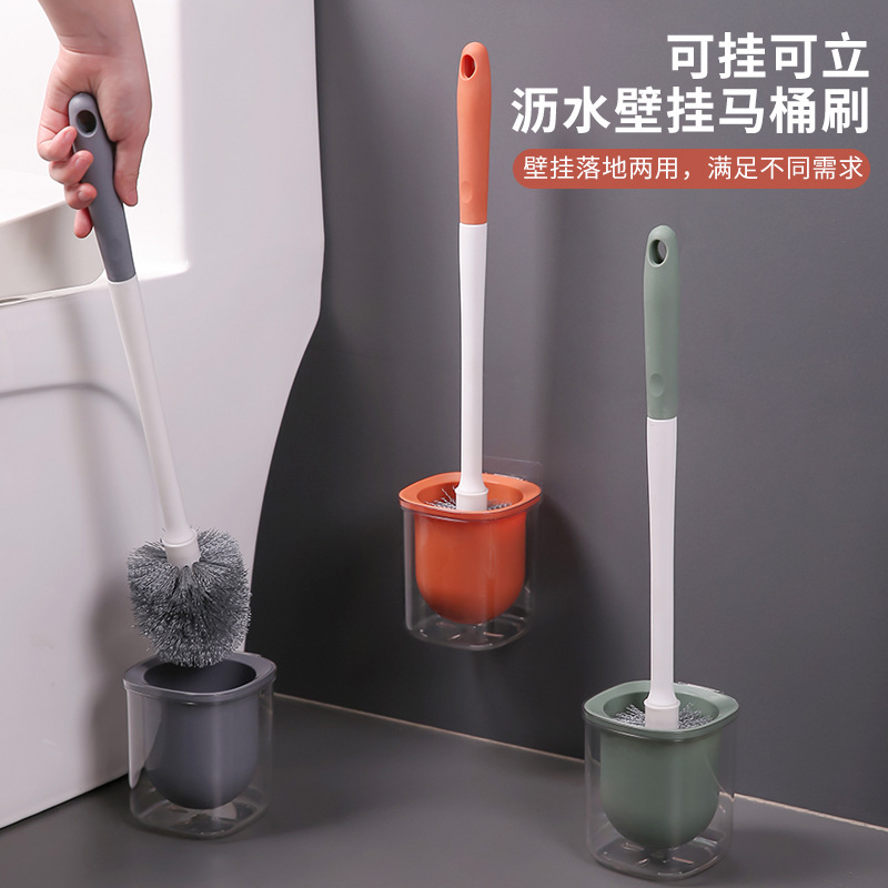 壁掛け式トイレブラシに死角がないトイレトイレの家庭用清潔な長い柄ブラシと水切り付きのセット