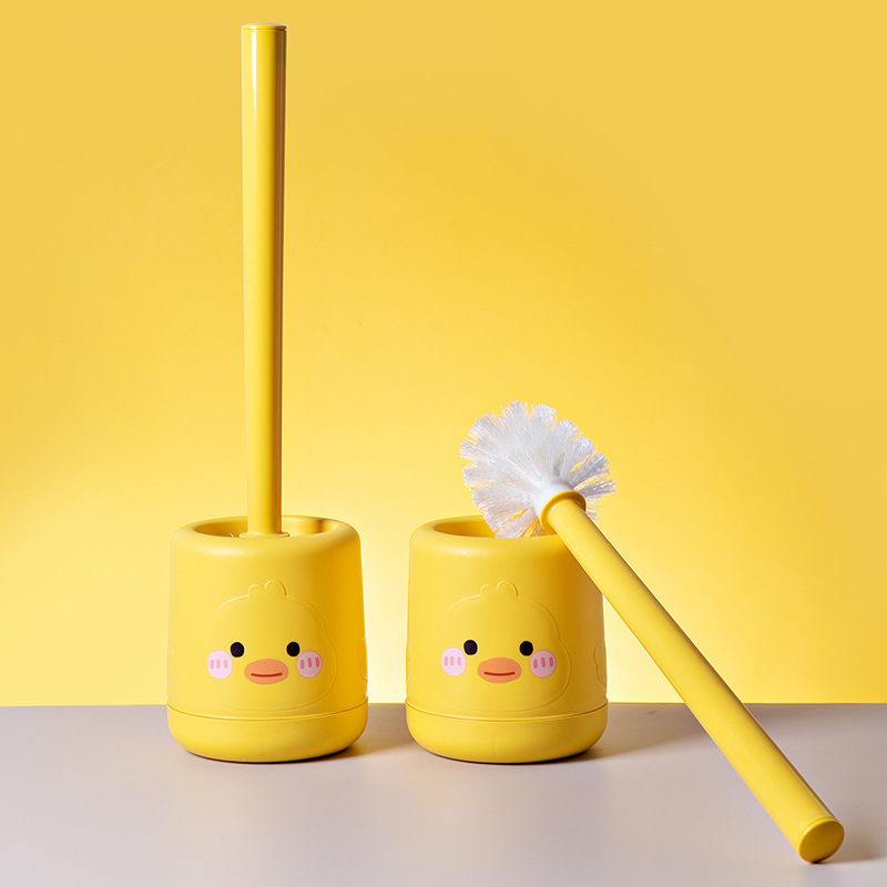 かわいいアヒルのトイレブラシ、漫画のデッドアングルフリークリーニングトイレブラシ、プラスチック毛、シリコン製、クリエイティブな壁掛けタイプ