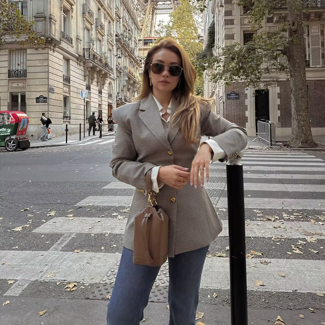 AliExpress クロスボーダーヨーロッパとアメリカの衣料品卸売 2025 秋の新 4 色ベルト付き千鳥格子スーツ