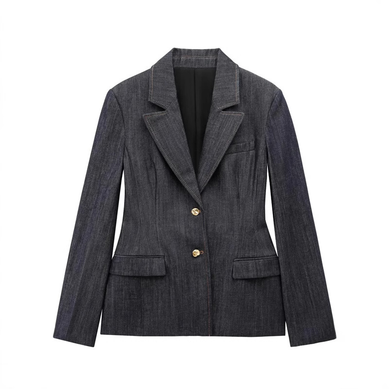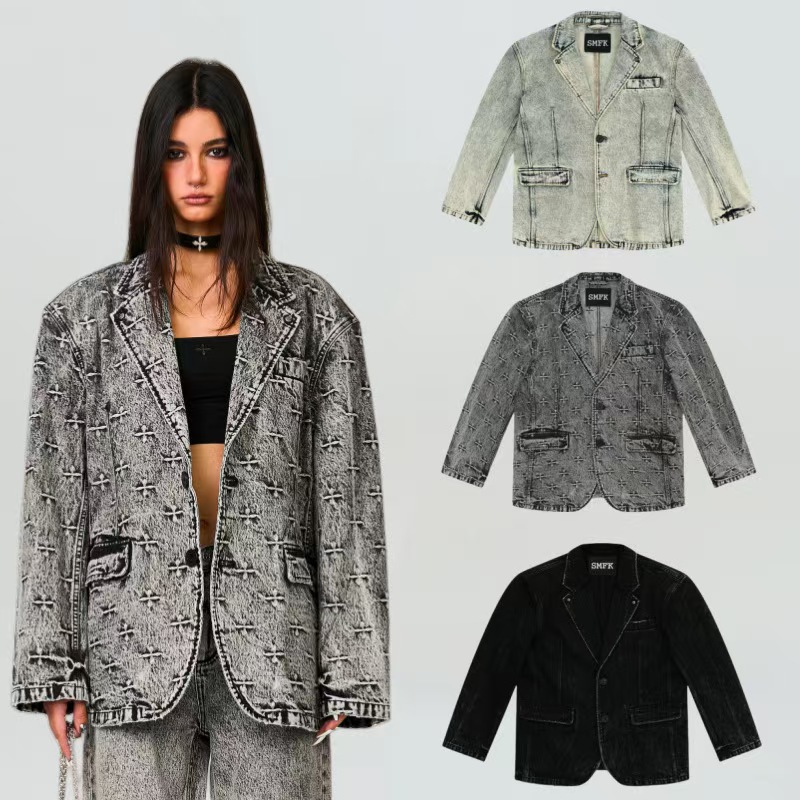2025年ヨーロッパとアメリカの新しいクロスボーダー独立ステーションの新しいライトカラーのヘビーウォッシュデニムブレザー-32137