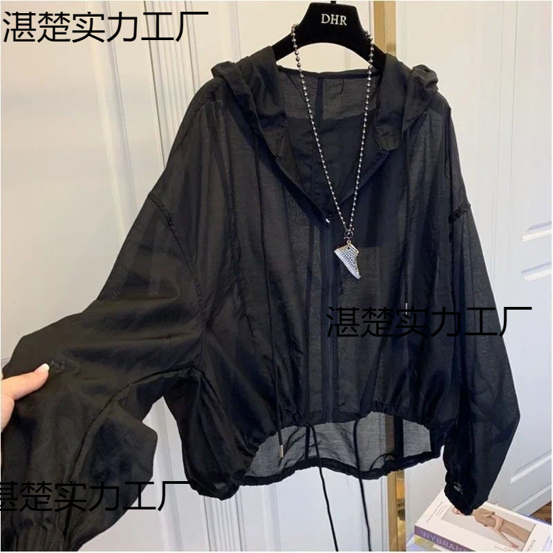 ゆったりしたファスナーの薄いタイプの通気性のあるジャケットの女性のタイプ2025夏の新型ネットの赤い帽子の短いタイプの日焼け止めの服