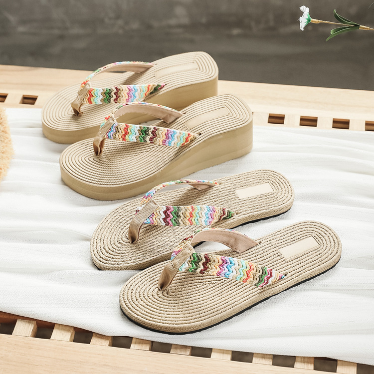 サンダルの女性のファッションは外国貿易の夏の新型の越境麻縄の女性のスリッパのサンダルの坂とローマの靴を着ます。