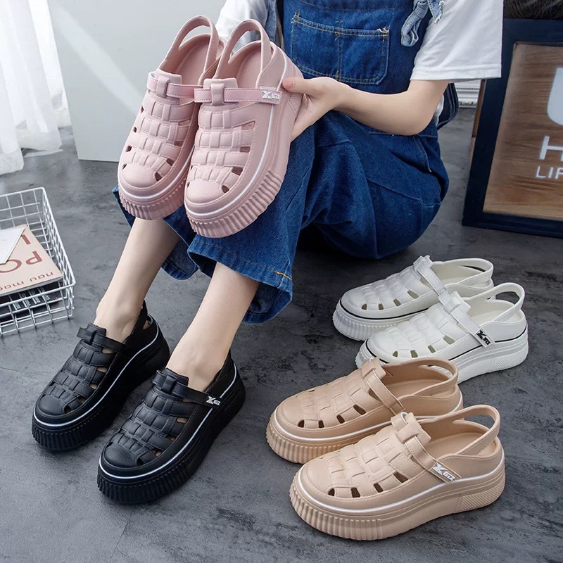 ビーチスリッパの女性は包頭の女性を履いています。夏の中でファッションが高くなります。