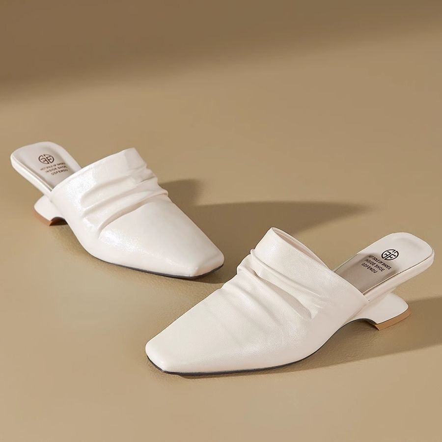 2025 新しい夏のスタイル包頭アウターウェア平底ローヒールスリッポン怠惰なサンダル女性のハーフスリッパポインテッドトゥインターネット有名人