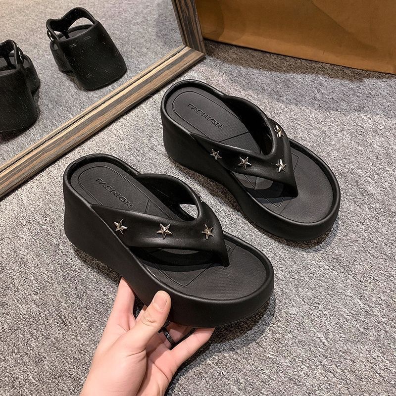 外国貿易プラットフォームソール魚口婦人靴 2025 夏の新厚底ウェッジスリッパ女性のアウターファッションサンダル