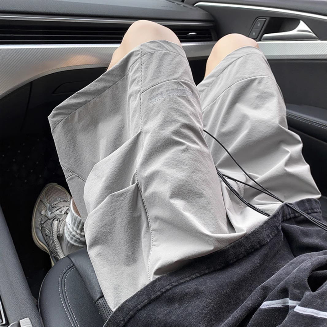 通気性のあるメンズ夏用オーバーオール、薄いアイスシルク速乾性スポーツボーイズショーツ、カジュアルなミッドレングスパンツ
