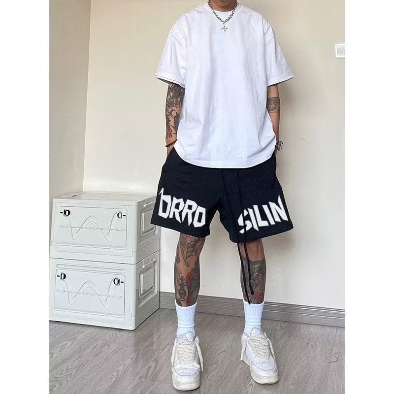 アメリカのinsファッションブランドのアルファベットのプリントのひものバスケットボールの半ズボンの男性の夏の百合のゆったりしているカジュアルな5分のズボンの卸売り