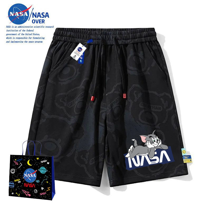 NASAと共同ブランドのトムとジェリーの漫画柄ショートパンツ、夏用メンズゆったりカジュアルスポーツパンツ、ヒップホップ、万能カジュアルウェア