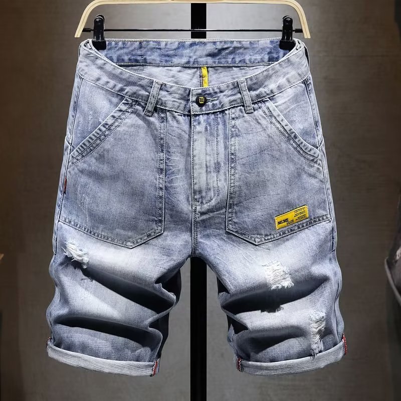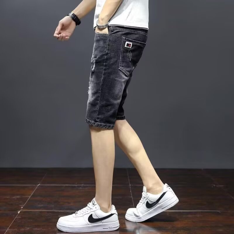 メンズデニムショートパンツ潮牌ゆるい五分ズボン夏の薄いカジュアルな穴の5分ズボン