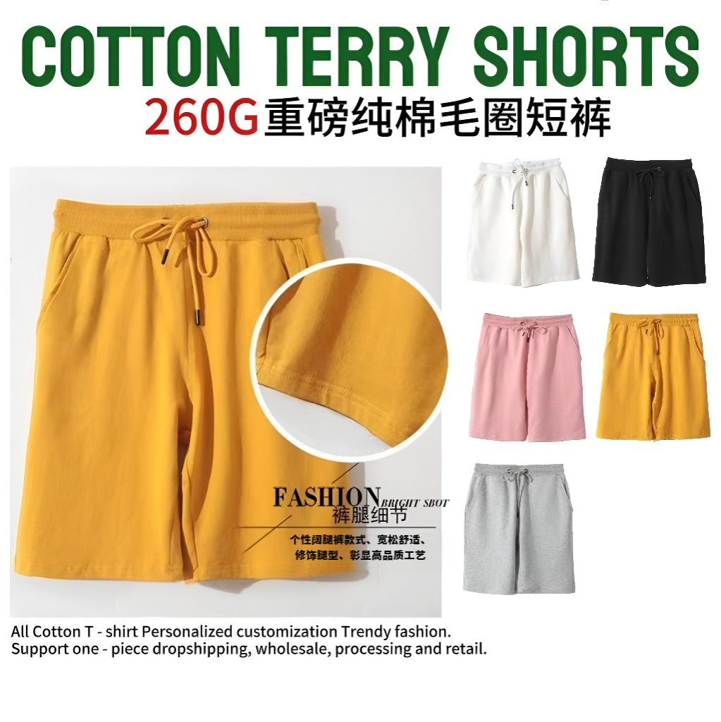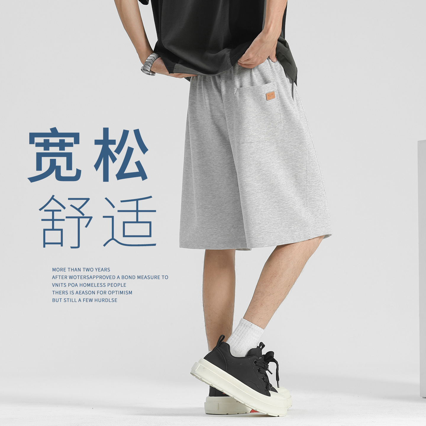 トレンディな純綿テリーショーツメンズルーズカジュアルシンプル通気性卸売印刷可能な無地5点パンツ