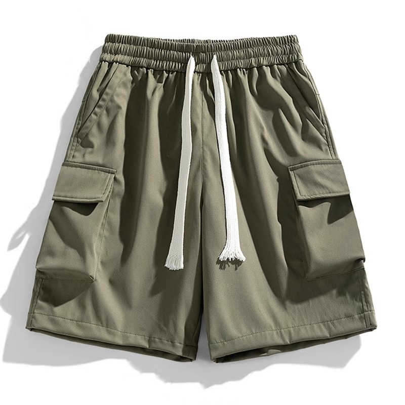 半ズボンの男性2025夏の新型のしわの工装の機能の速乾の傘の兵のズボンの薄い金のゆったりしているカジュアルな5分のズボンの男性